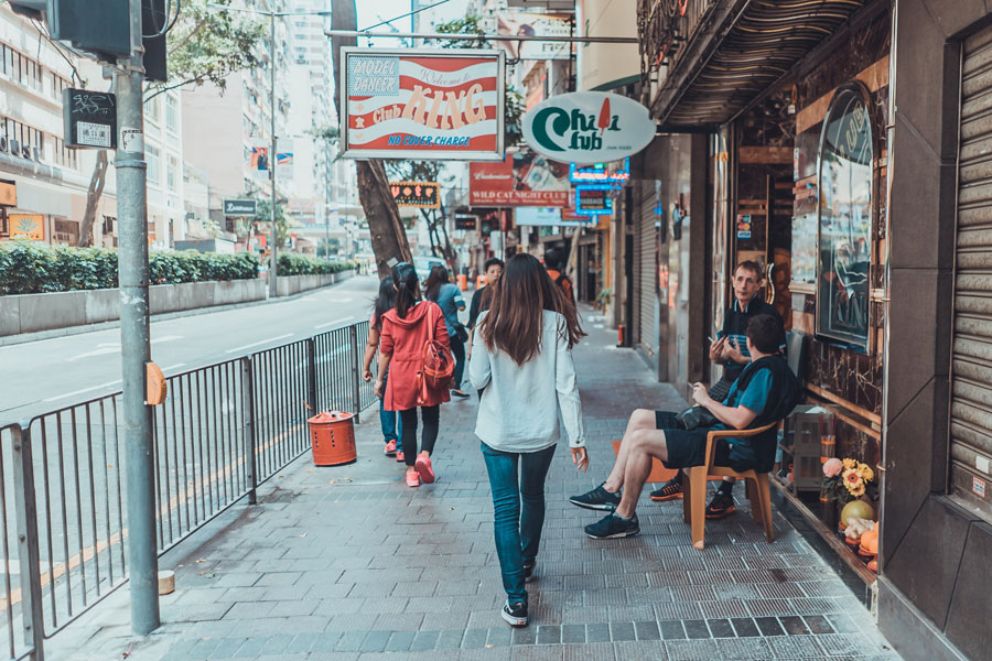 Woman walking between brown